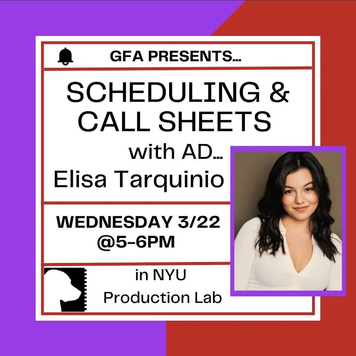 “Interested in Assistant Directing? Come learn the basics of making schedules and call sheets from AD Elisa Tarquinio” -NYU Gallatin Film Alliance